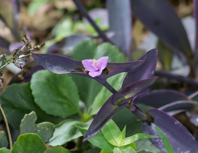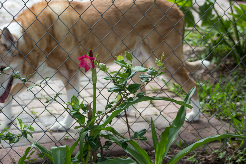 Tradescantia pallida, more commonly known as Purple Heart… and since I always post the first Crinum lily of the season… lily with Bree in the background. In people years the old girl is 83.