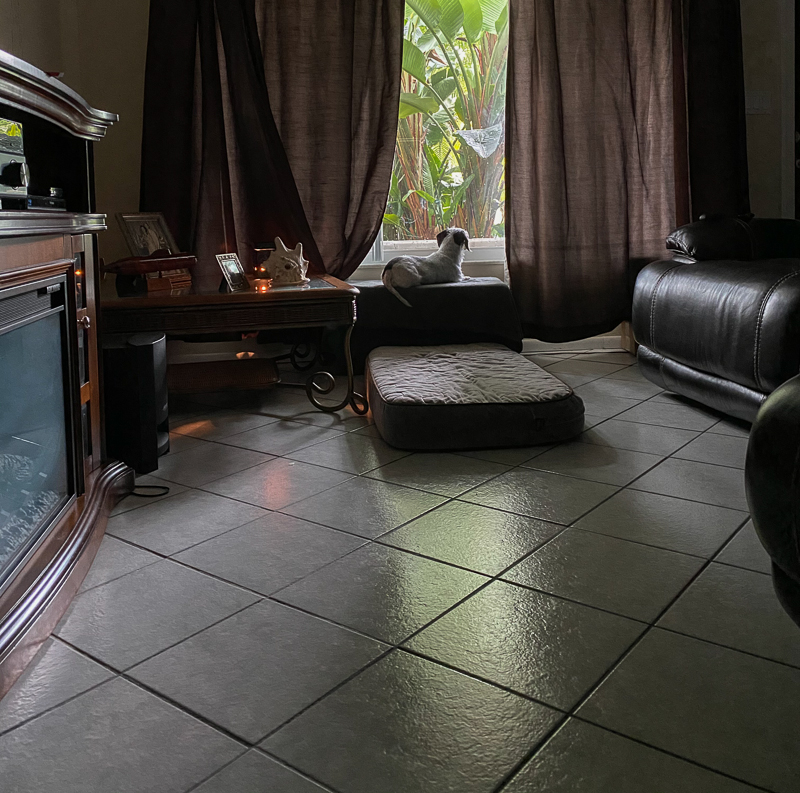 Pretty much every day during the summer months is a rainy day for us. Today was no different, except that when it became dark and rainy I took to the comfy chair and watched Daisy. She doesn’t care for rain, but it doesn’t stop her looking for chameleons and delivery trucks.