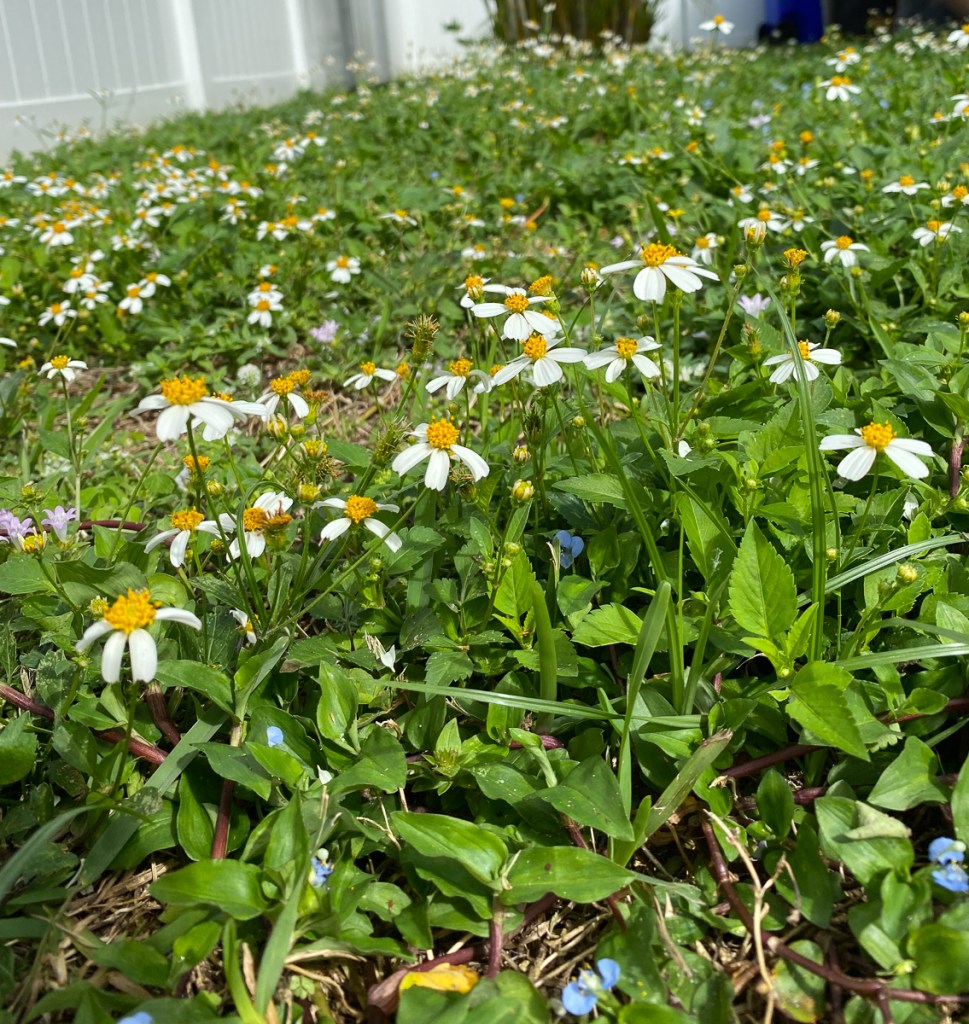 The yard guys are obviously running behind, but I delight in the weeds. Never one to worry over or demand grassy perfection, I’m happy as long as it’s green.