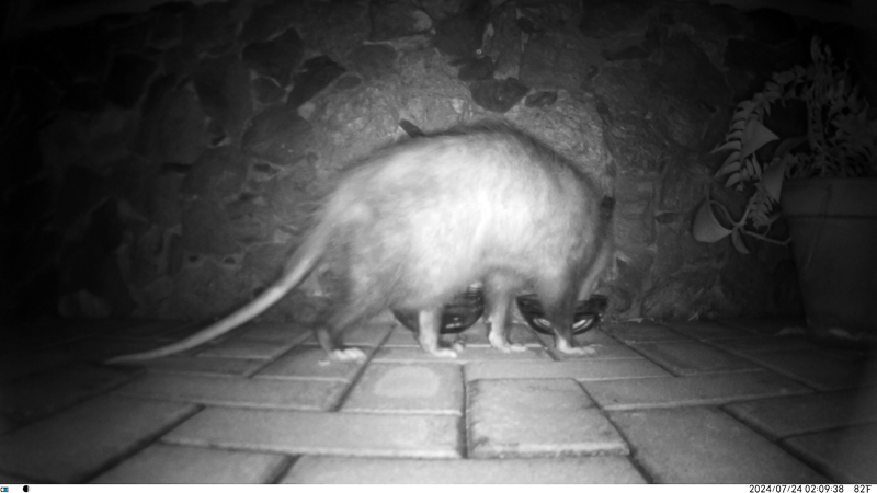 And a young possum. He spends quite a lot of time at the trough, and is the only critter I’ve seen drinking!