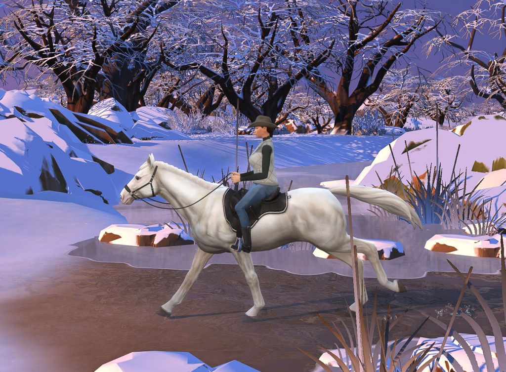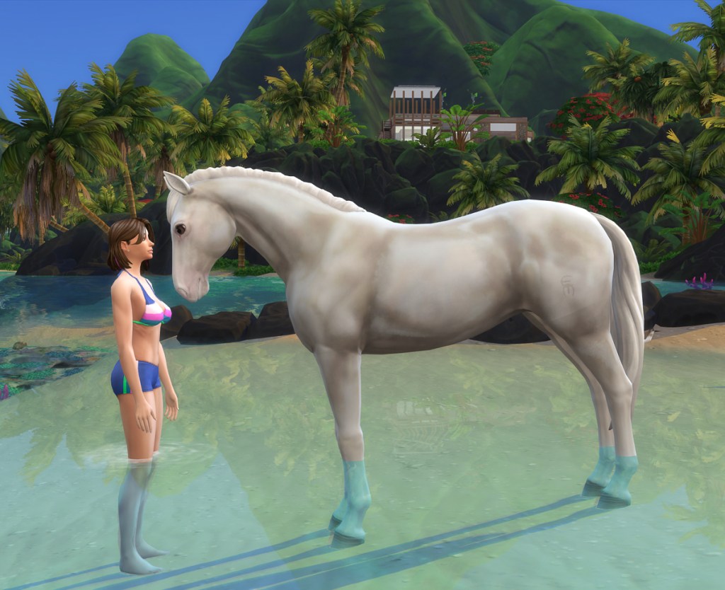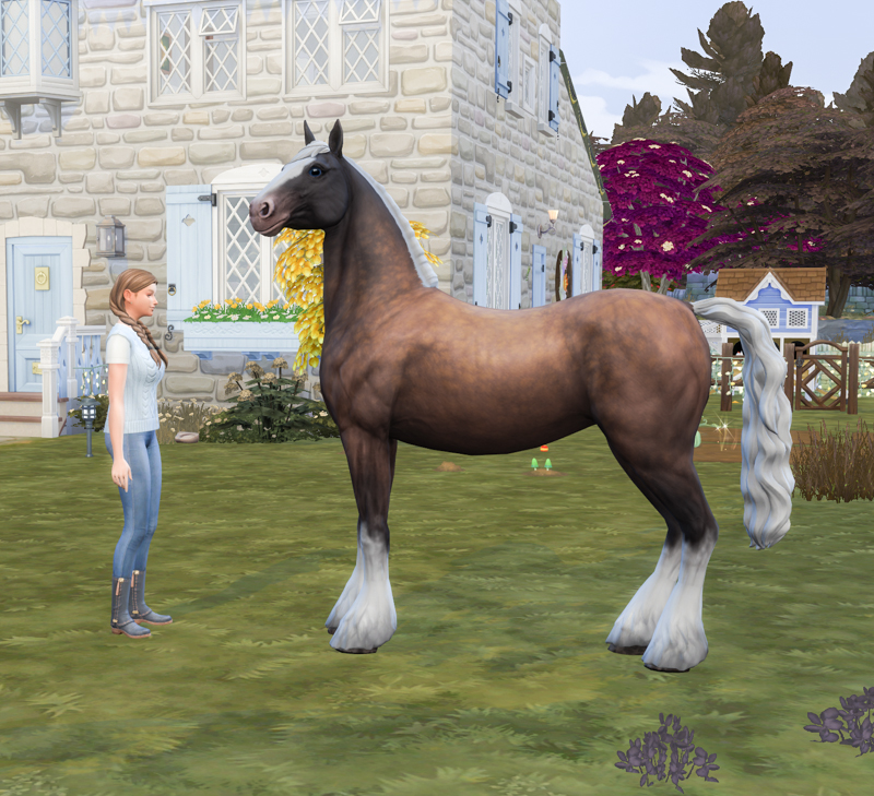 I’m obsessed with the horse muzzles. EA got a lot right in the pack, because the movements are amazing. The actions are spot on. Don’t get me wrong; ol’ Buttercup is wearing custom eyes and skin. Everything EA does can be made better by modders. 😉