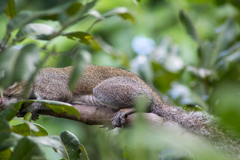 We never see squirrels, probably because every tree growing on this lot is a palm of some sort, but now that the neighbor’s greenery is growing over the fence… ta da! Squirrel!